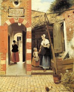 Das Bild heißt „Der Hinterhof“ und wurde von Pieter de Hooch gemalt. Es entstand im Jahre 1658 in London, und hängt heute in der National Gallery.