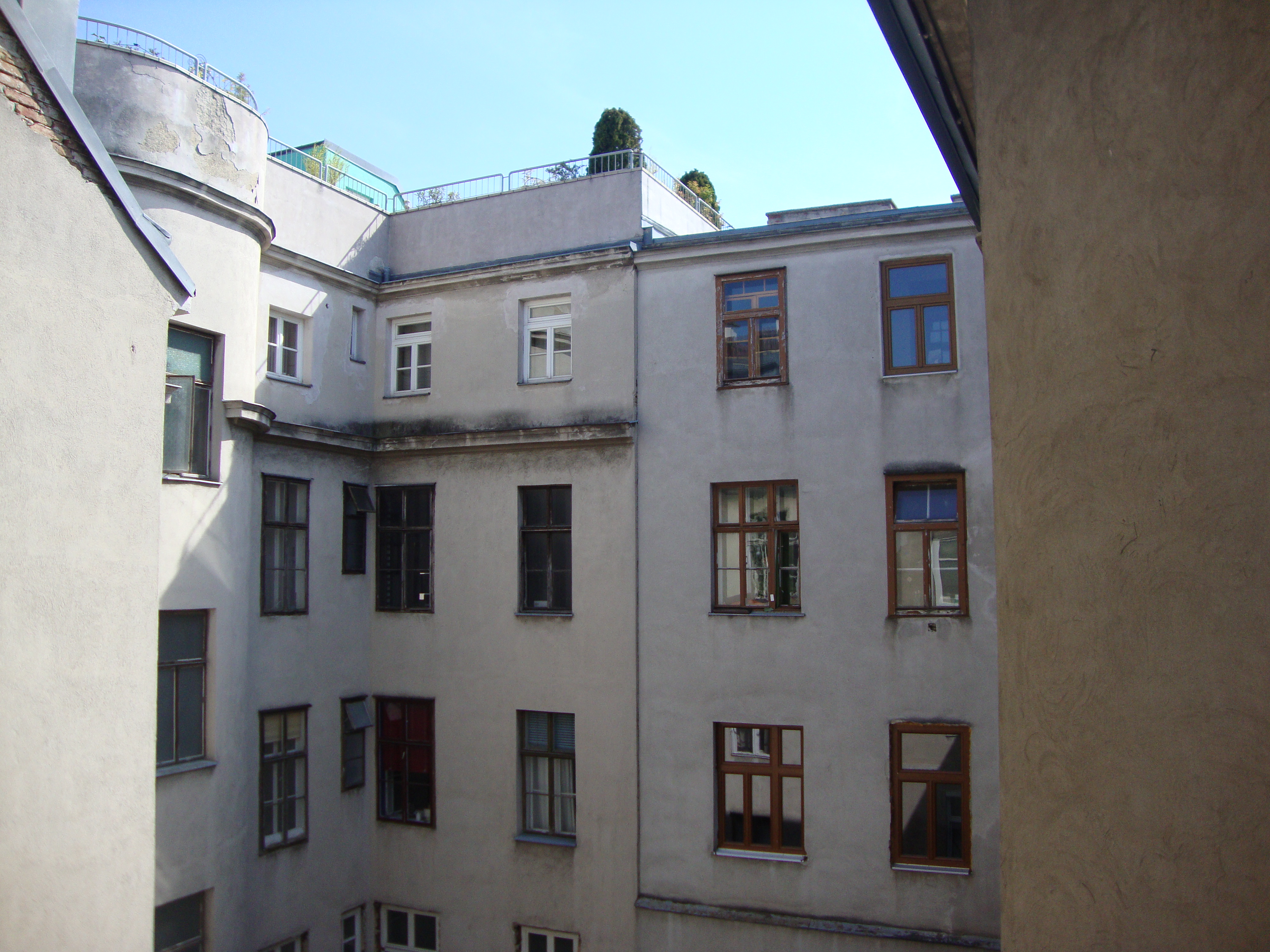 Ein Hochhaus fällt ganz besonders auf. Es befindet sich in der dritten Häuserreihe von unten. Dabei grenzt es genau an meiner beschriebenen vertikal verlaufenden Straße. Es ist so extrem hoch, dass man auf dem Bild nicht mehr das Dach oder die Spitze erkennen kann. Die vielen Glasfenster in diesem Wolkenkratzer reflektieren das Sonnenlicht sehr stark, so dass das untere Drittel des zu sehenenden Wolkenkratzers ganz besonders hell erscheint.